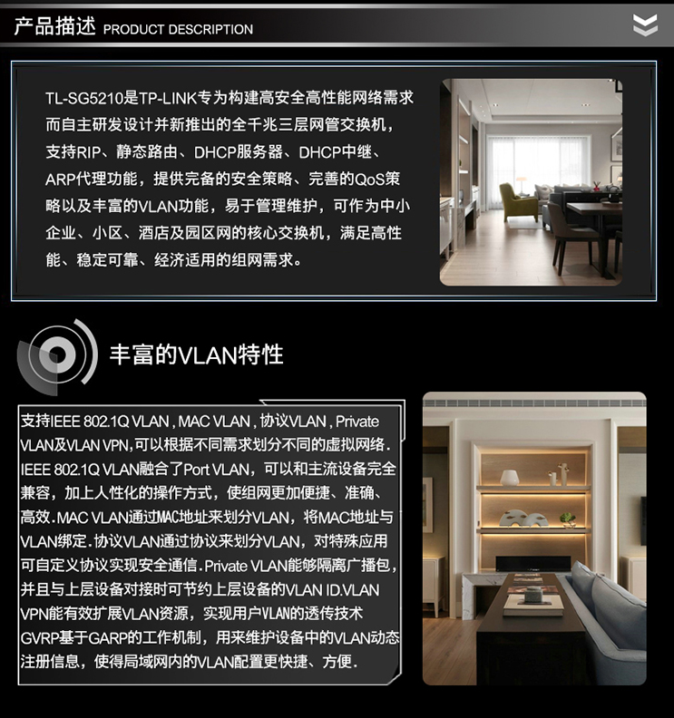 以太網(wǎng)交換機(jī)普聯(lián)/TP-LINK8口全千兆三層交換機(jī)帶2光纖光口可網(wǎng)管VLAN網(wǎng)絡(luò)企業(yè)級(jí)TL-SG5210/臺(tái)