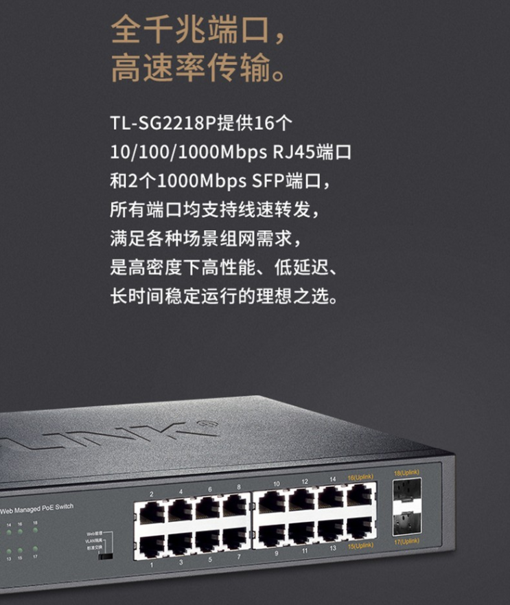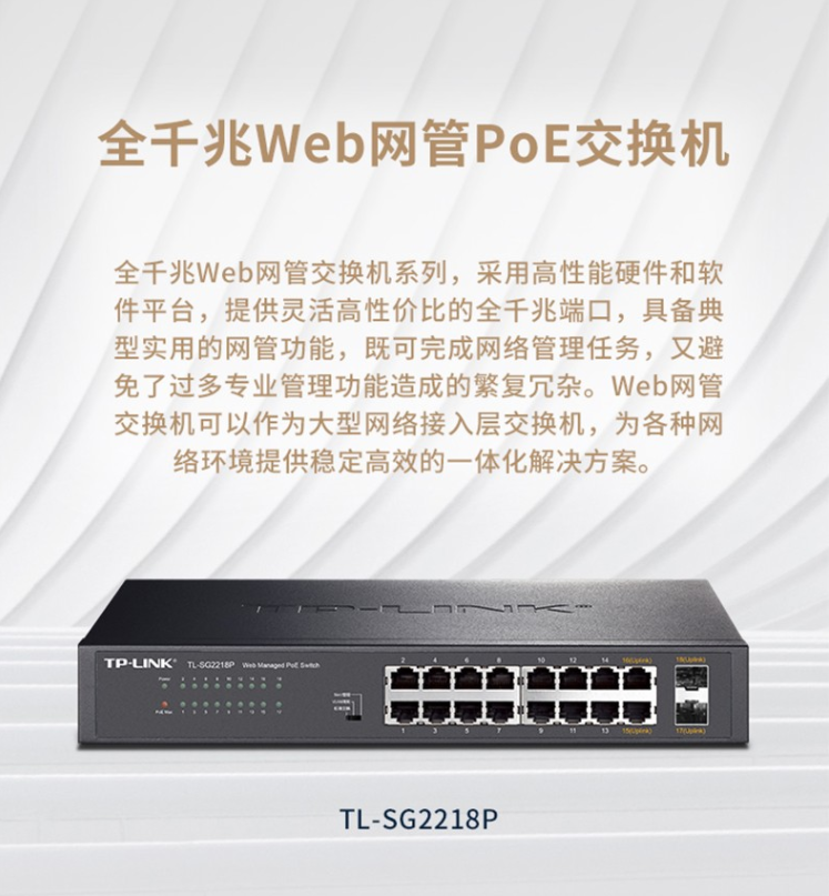 以太網(wǎng)交換機(jī)普聯(lián)/TP-LINK網(wǎng)管型云管理POE供電交換機(jī) 16口千兆 企業(yè)級(jí)TL-SG2218P/臺(tái)