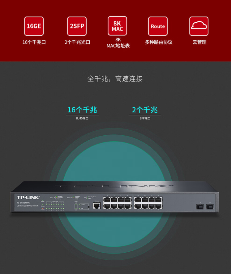 以太網(wǎng)交換機(jī)普聯(lián)/TP-LINK18口可網(wǎng)管2光口16口供電企業(yè)級(jí)千兆三層PoE交換機(jī)TL-SG5218PE/臺(tái)