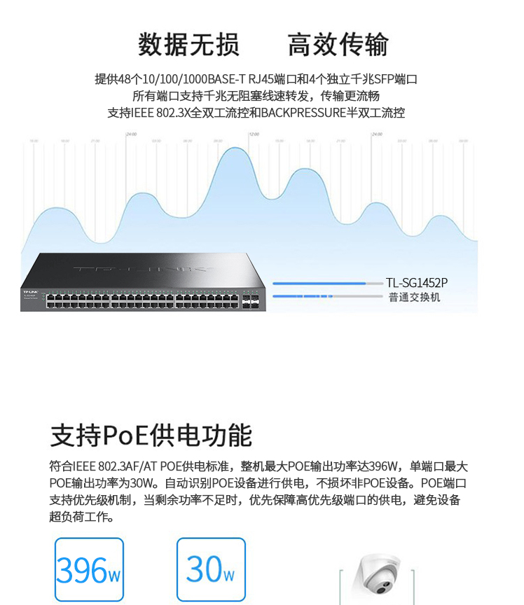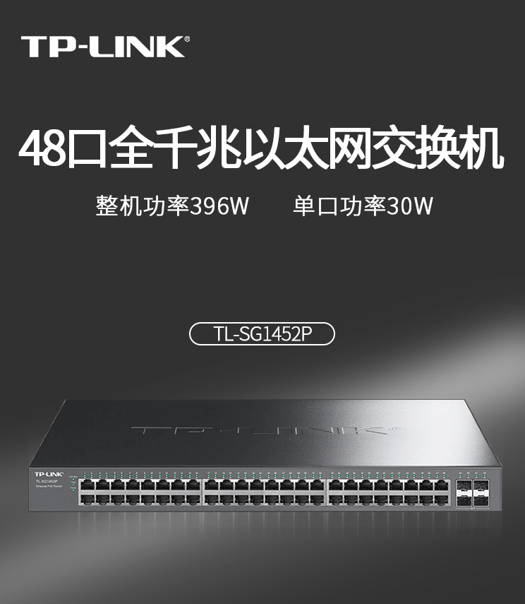 以太網(wǎng)交換機(jī)普聯(lián)/TP-LINK52口全千兆POE交換機(jī)48電口4光口企業(yè)級(jí)接入層交換機(jī)TL-SG1452P/臺(tái)