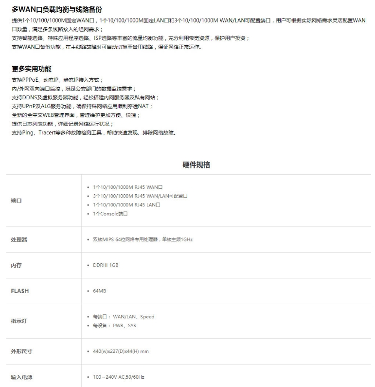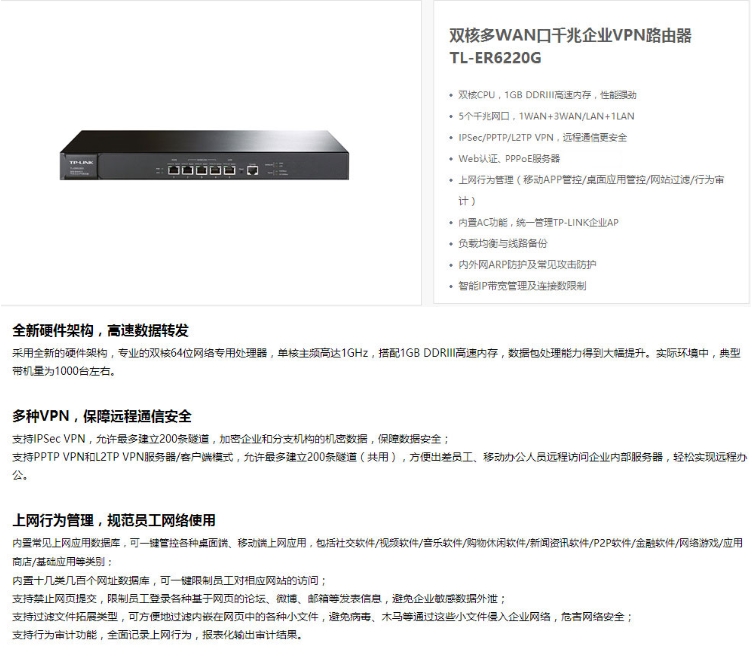 路由器普聯(lián)/TP-LINK企業(yè)級(jí)商用核心有線千兆路由器TL-ER6220G/臺(tái)