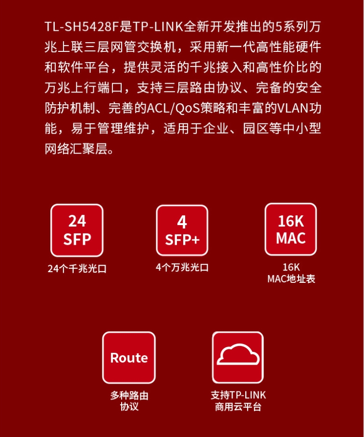 以太網(wǎng)交換機(jī)普聯(lián)/TP-LINK企業(yè)級三層網(wǎng)管交換機(jī)支持云管理TL-SH5428F/臺