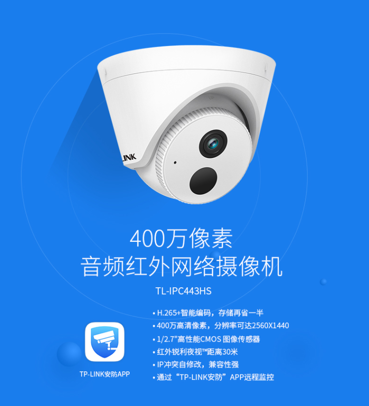 監(jiān)控攝像機普聯(lián)/TP-LINK紅外音頻網(wǎng)絡(luò)攝像機400萬像素室外監(jiān)控器攝像頭TL-IPC443HS/臺