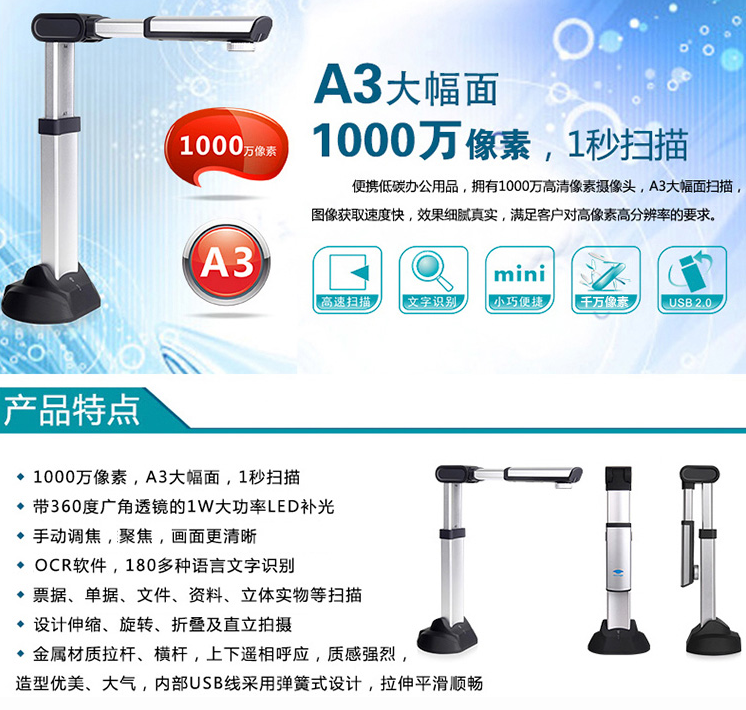 ADF彩色單面掃描速度(A4,200dpi)  :   10