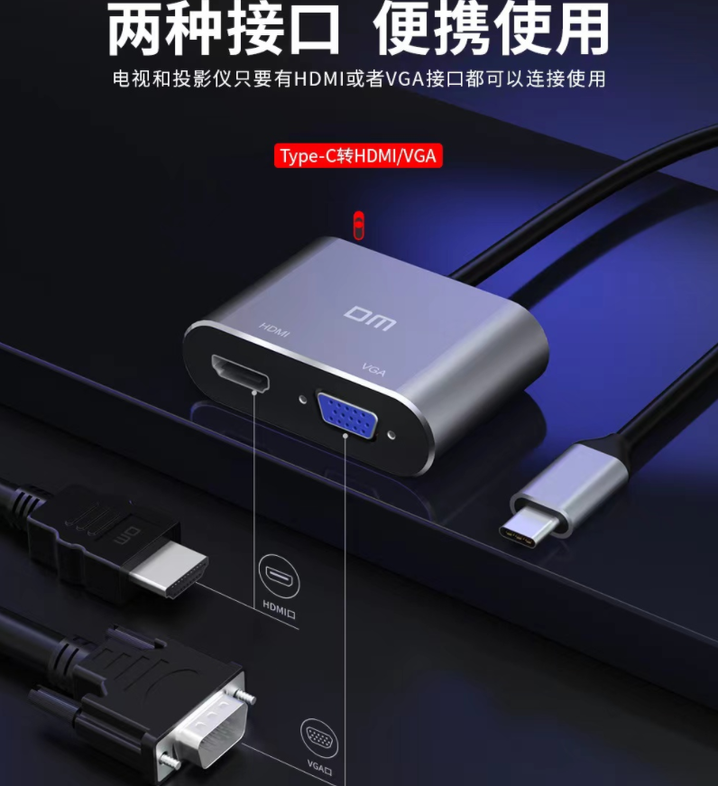 集線器大邁/DM TYPE-C轉(zhuǎn)HDMI+VGA二合一 集線器CHB016/個(gè)