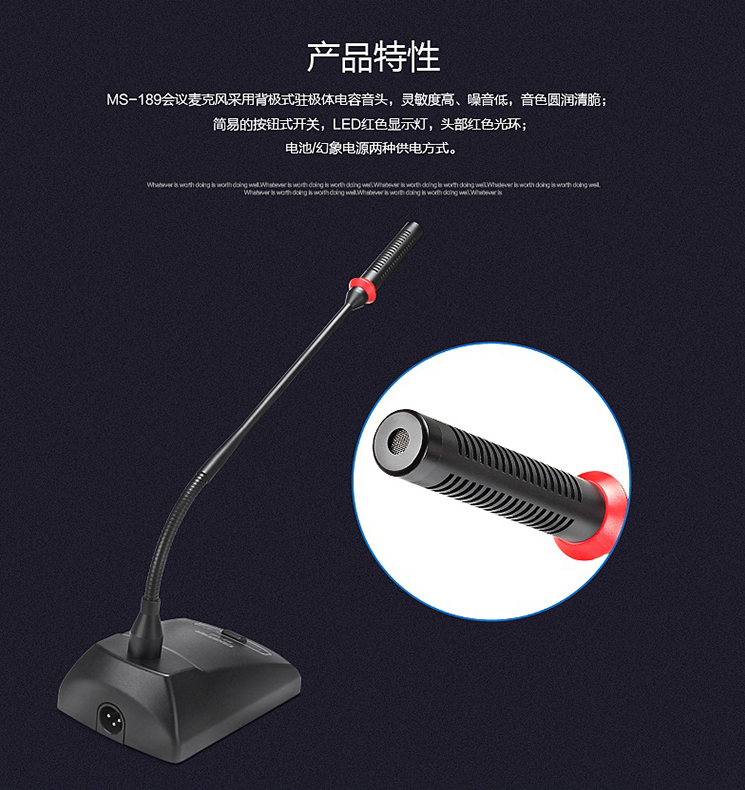 麥克得勝/TAKSTAR會議麥克風(fēng) 臺式鵝頸有線話筒專業(yè)演出舞臺主持麥克風(fēng)典雅黑MS-189/臺